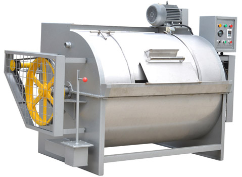 水洗機(jī)是滾筒型,內(nèi)、外殼采用優(yōu)質(zhì)不銹鋼制作而成,平整光滑、耐腐蝕、不損傷織物。水洗機(jī)由內(nèi)筒、外筒、電機(jī)、支撐總成、傳動(dòng)總成、電器總成組成。結(jié)構(gòu)合理、安裝使用方便。水洗機(jī)工作原理:由頂置電機(jī)、三角膠帶、帶動(dòng)傳動(dòng)總成,使內(nèi)筒作正反轉(zhuǎn)運(yùn)轉(zhuǎn),通過(guò)織物與織物、織物與內(nèi)筒壁的相互摩擦,達(dá)到洗滌效果。機(jī)器內(nèi)置過(guò)熱、過(guò)載裝置、定時(shí)裝置、正反轉(zhuǎn)控制裝置。水洗機(jī)外筒門設(shè)有安全裝置,若運(yùn)行中門被打開(kāi),機(jī)器立即停止運(yùn)轉(zhuǎn),確保機(jī)器、操作人員的安全。按容量大小分為:15kg、30kg、50kg、70kg、100kg、150kg、200kg等系列。該容量為干衣物的重量。