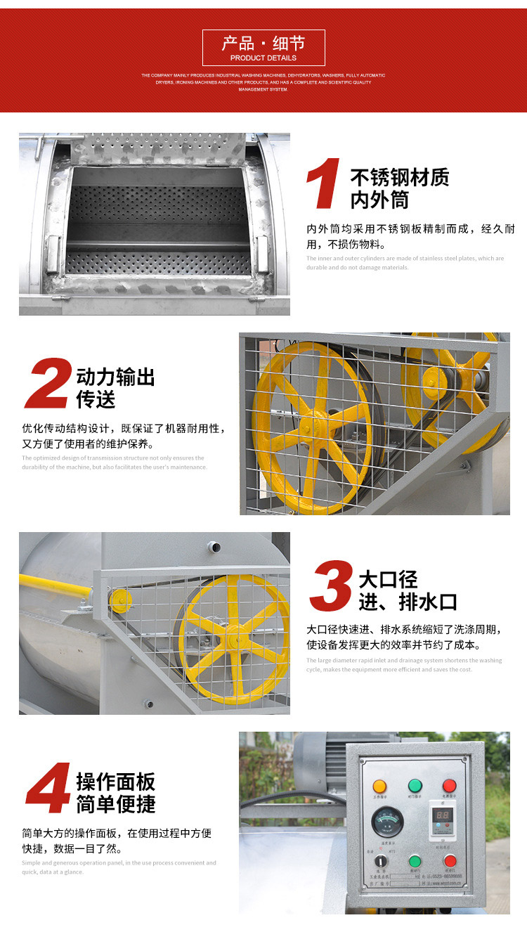 我公司專注于工業(yè)洗衣機(jī),脫水機(jī),水洗機(jī)等洗滌設(shè)備的生產(chǎn),同時(shí)我司為特殊用戶訂制非標(biāo)洗滌機(jī)械。熱忱歡迎廣大客戶來(lái)電咨詢產(chǎn)品信息。