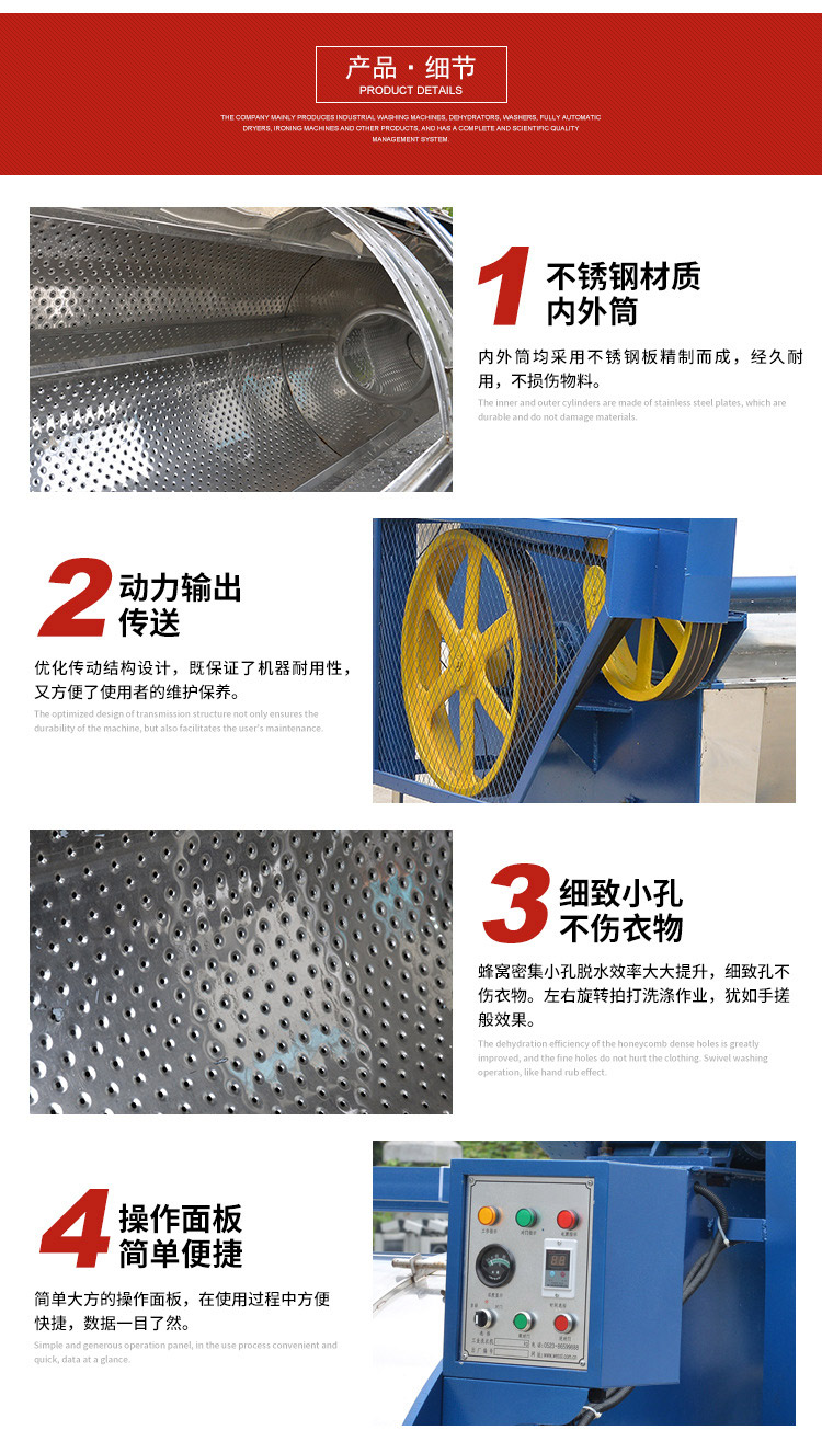備注:濾布清洗機(jī)按容量大小分為:15kg、30kg、50kg、70kg、100kg、150kg、200kg。濾布清洗機(jī)型號按容量分,此處的容量是指干衣物的重量,不含水。
